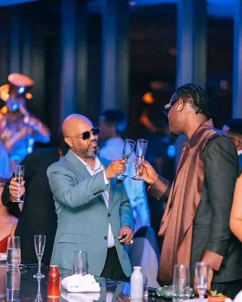 Mu mafoto yashyizwe hanze atandukanye harimo ayo umuhanzi bruce melodie yari yahuje n’uyu mugabo ukomeye muri kiriya gihugu cya tanzania bahuza ibirahure bifurizanya kuryoherwa.