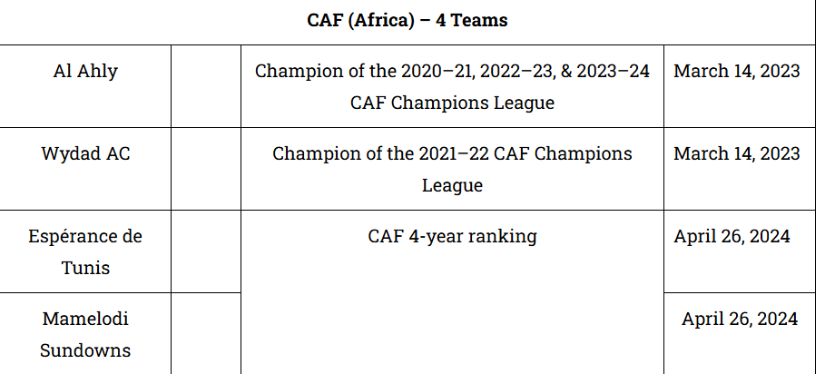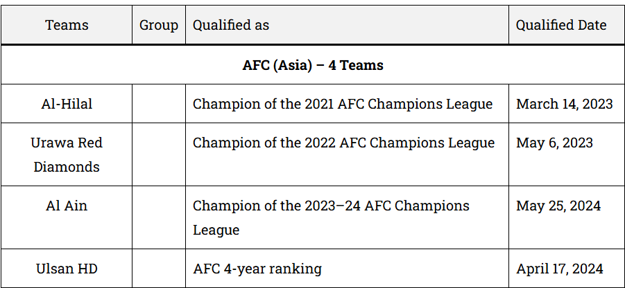 Muri iri rushanwa, amakipe 32 yagiye ashyirwa mu matsinda atandukanye. Mu itsinda D, Chelsea izahura na Flamengo, ES Tunis na Club Leon, mu gihe Manchester City iri mu itsinda G hamwe na Juventus, Al Ain (UAE) na Wydad AC.
