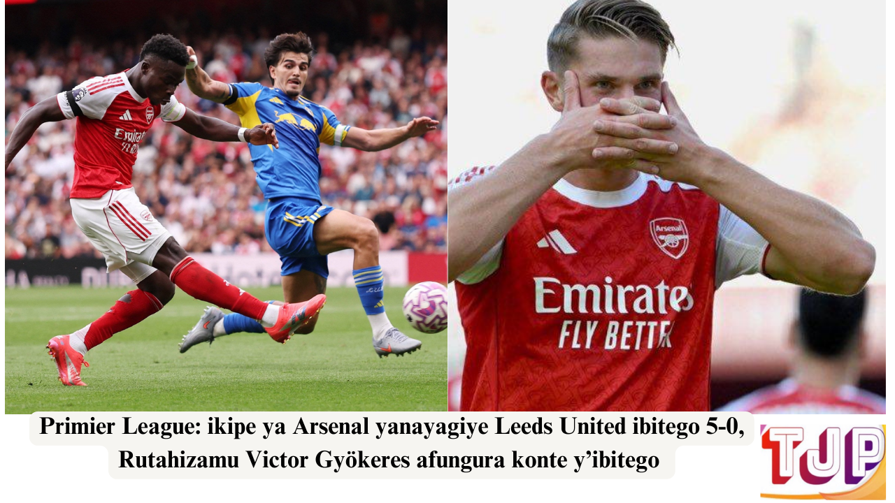 Primier League yakomeza kuri uyu wa gatandatu aho ikipe ya Arsenal iraye k’umwanya wa mbere nyuma yo kunyagira ikipe ya Leeds United ibitego 5-0 bigatuma ihita izigama ibitego 6 byatumye ihita ifata umwanya wa mbere by’agateganyo.